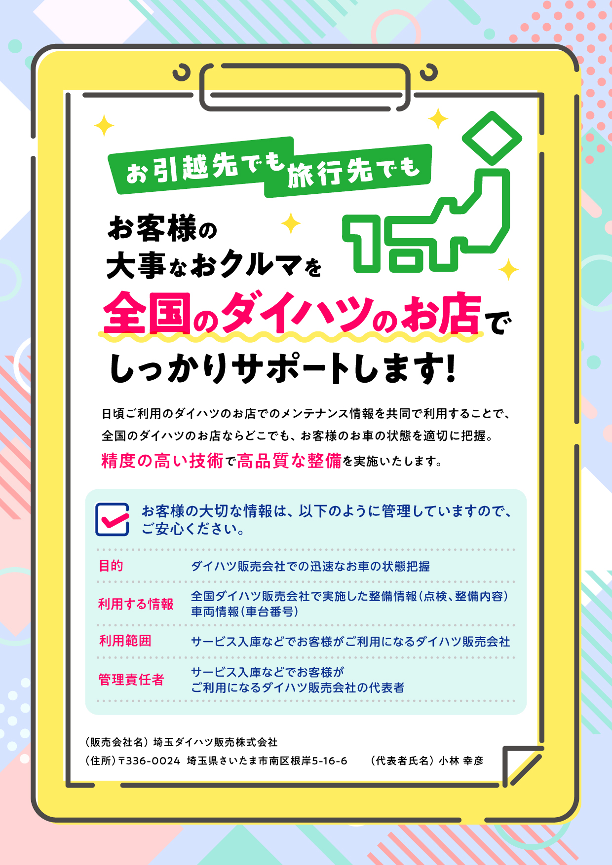 技術のチームワークで確実な車検を実現している埼玉ダイハツならではのサービスです。
