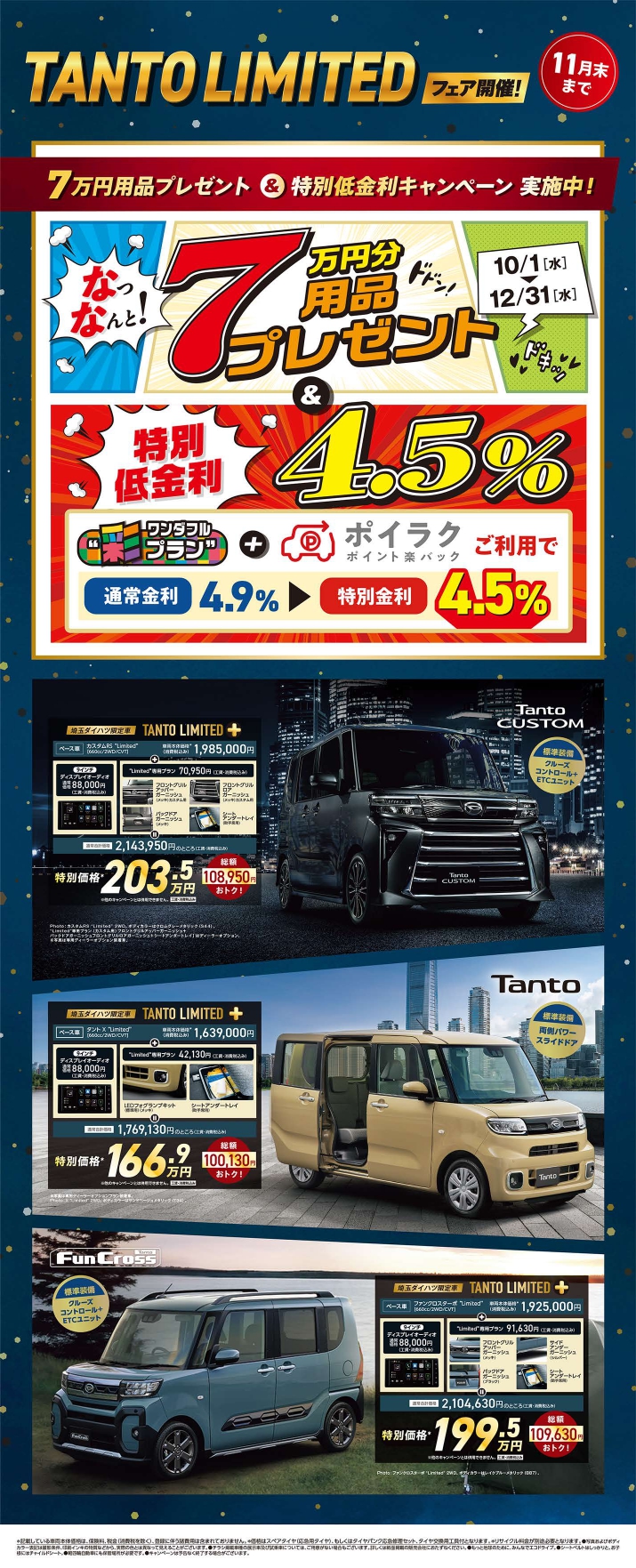 ※TANTO LIMITED FAIRは埼玉ダイハツ直営店28店舗でのみ開催しております。