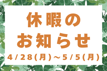 4/28(月)~5/5(月)お休みさせていただきます