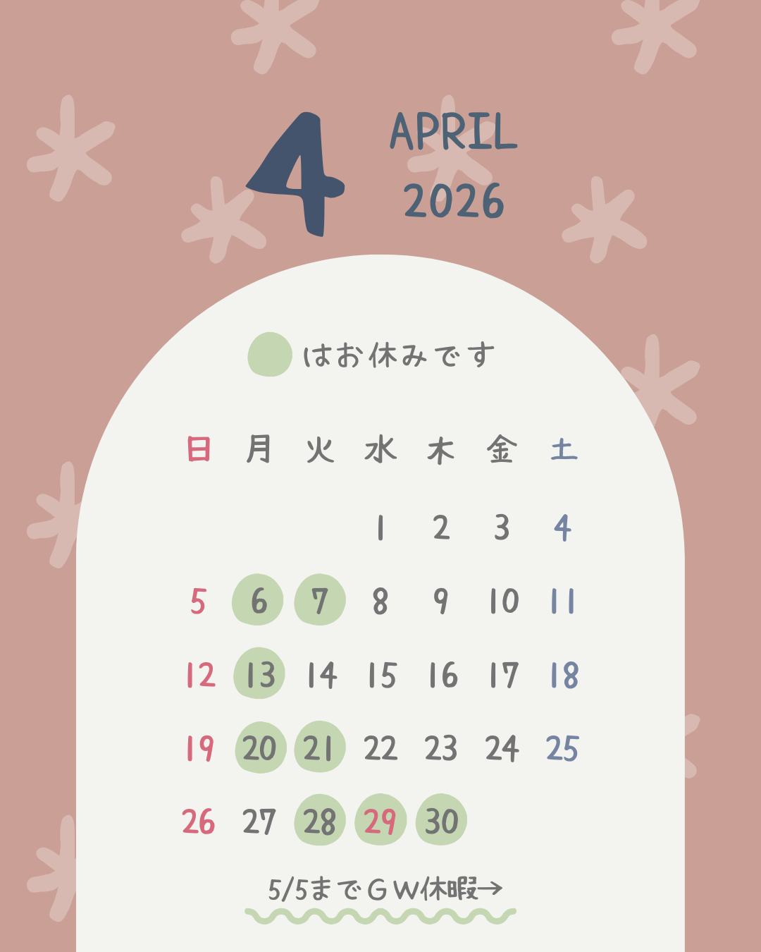 4月の定休日はこちら👇