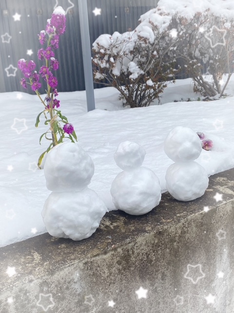知らない間に雪だるまが3体並んでいました⛄⛄⛄