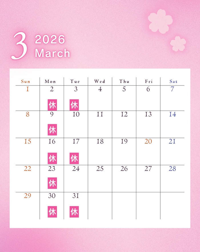 土日は予約が埋まりやすいので、お早めにお願いいたします✨