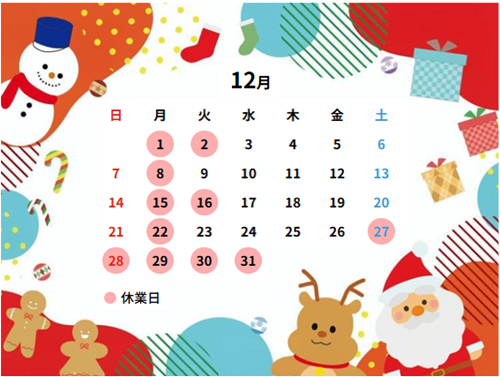 また、来月は年末年始の関係で27日から長期休暇がございます。