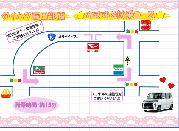 春日部店おすすめの試乗コースがございますので、