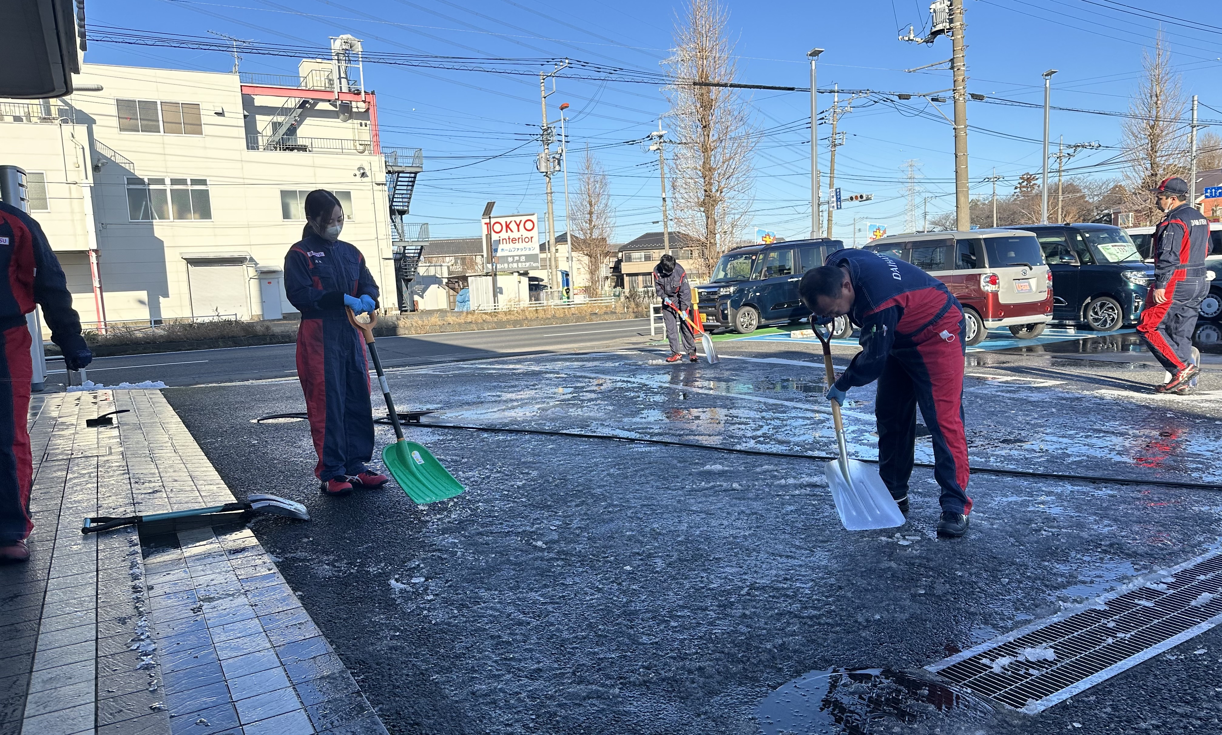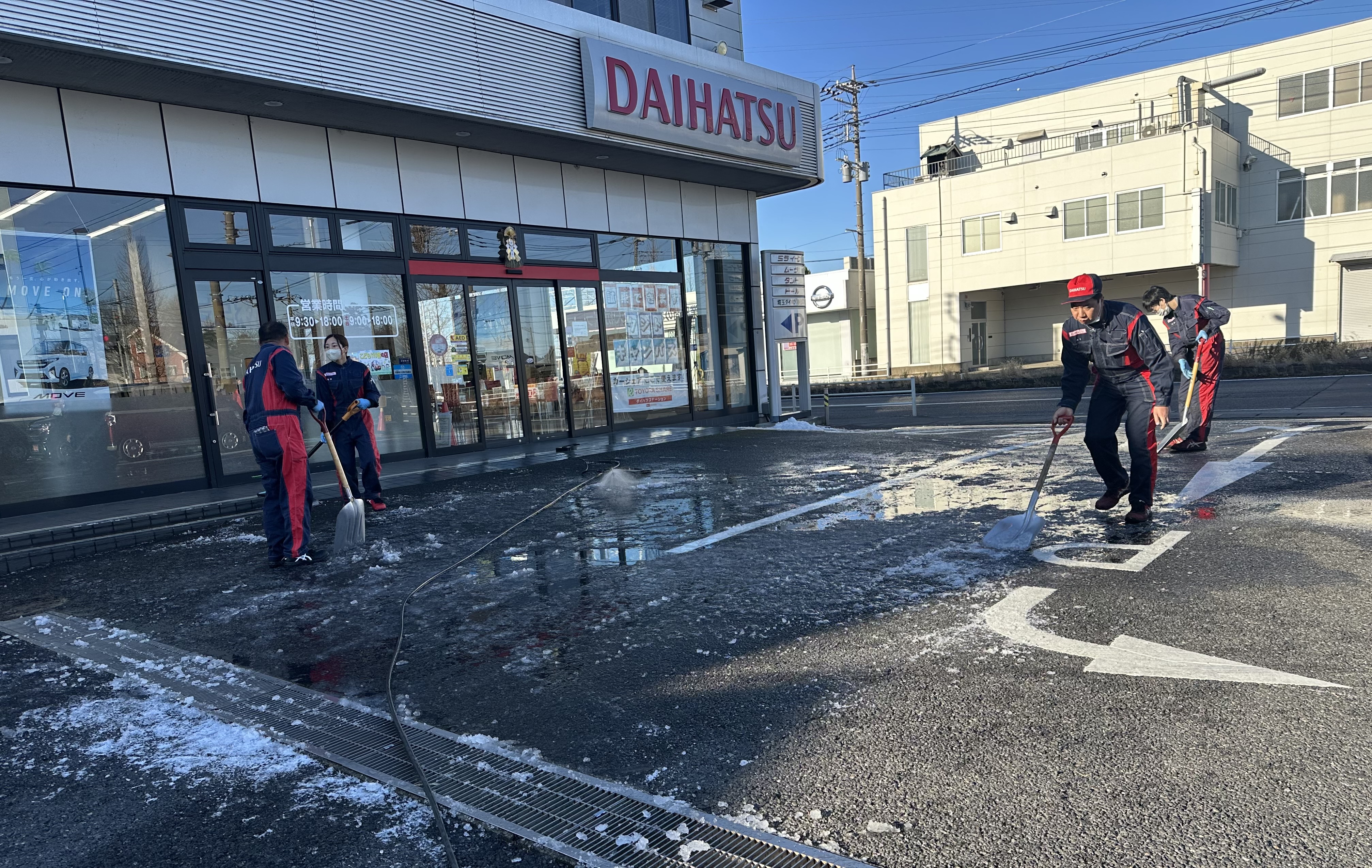 春日部店の入り口も凍って滑りやすくなっておりました💦