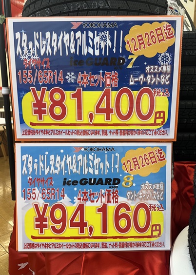 ダイハツ春日部店では、スタッドレスタイヤ&アルミセットのキャンペーンを