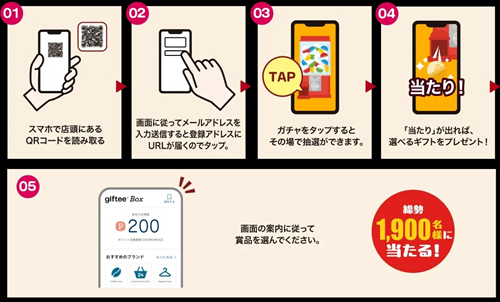 店頭にあるQRコードからお好きな賞品を選んで応募
