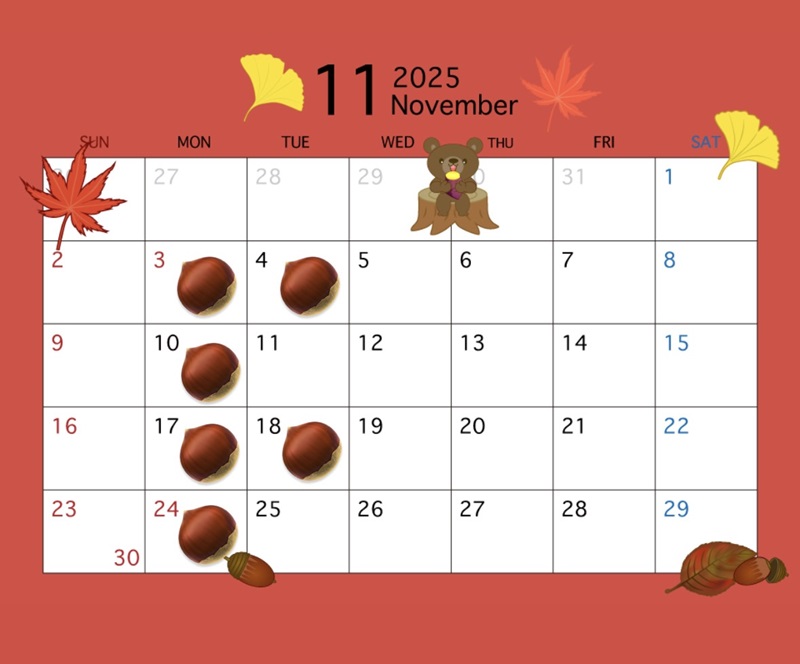 🌰マークの日がお休みです😌