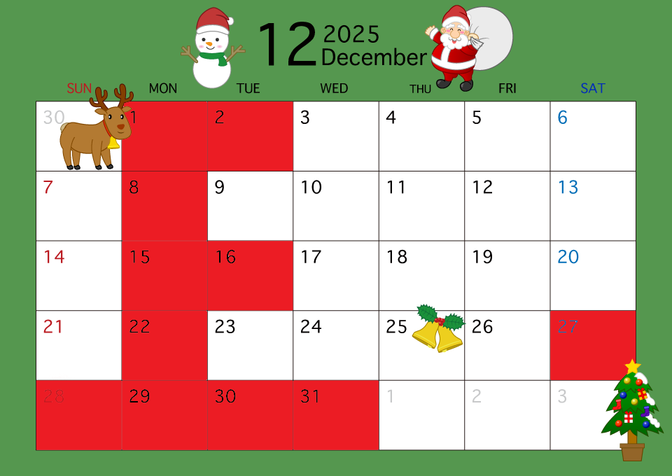 話は変わりますが12月のカレンダーができましたのでお知らせです♬