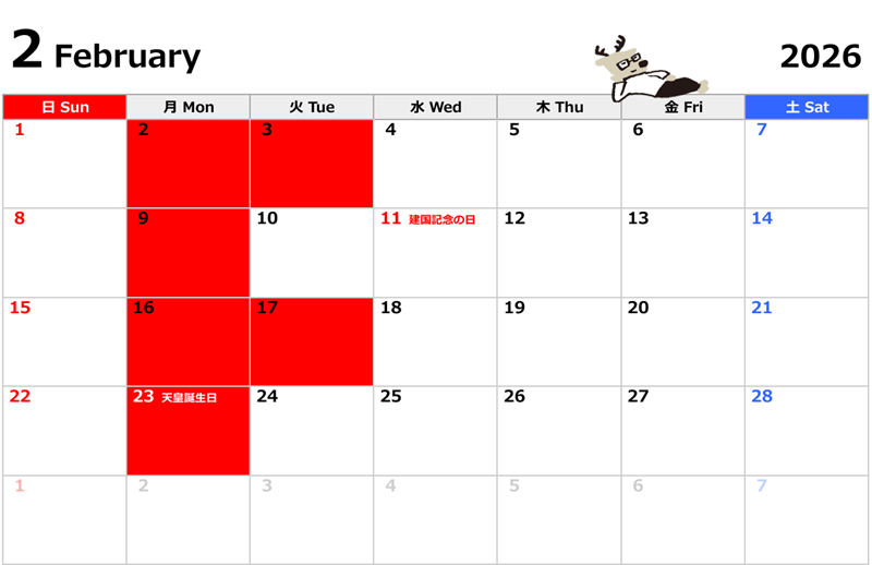2月のお休みです!