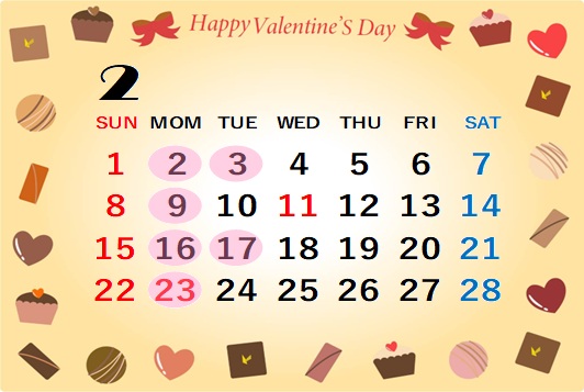 ということで、2月のお休みのご案内です😊