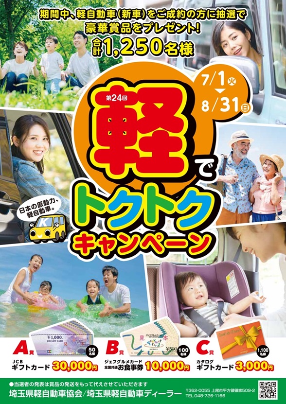 キャンペーン期間中に軽自動車(新車)をご成約されたお客様から抽選で賞品をプレゼント!