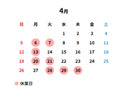 定休日カレンダー