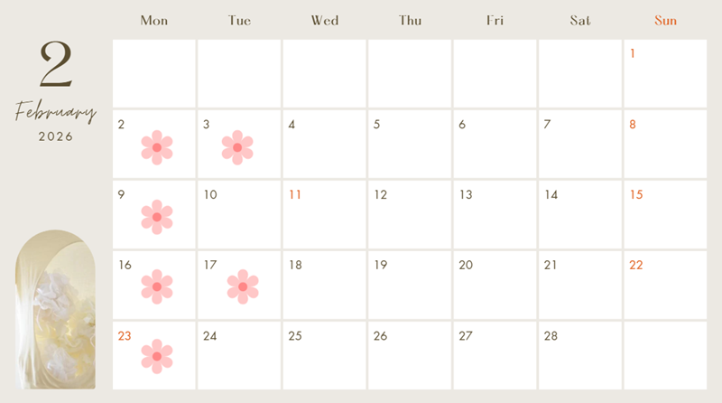 花のマークが付いてる日がお休みになります(__)