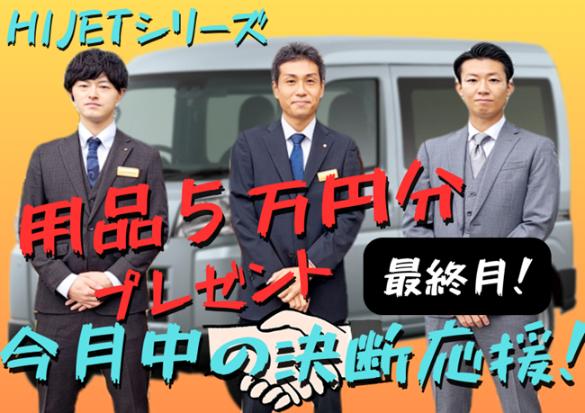 今ならハイゼットシリーズご契約で用品5万円プレゼント🎁
