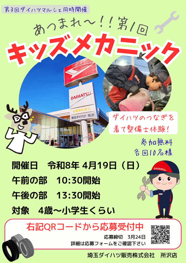 大人気イベント『キッズメカニック』ついに所沢店で開催決定しました🩷