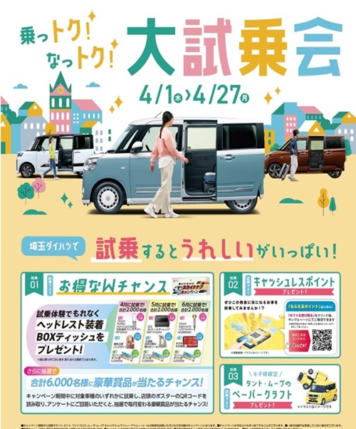 📍スライドドア車の試乗で『ヘッドレストBOXティッシュ』+抽選会