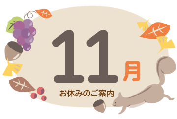 11月定休日のお知らせ♪