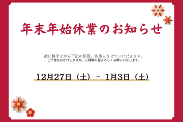 2025年12月26日東松山店【東松山店】年末年始のお休みのお知らせ🎍